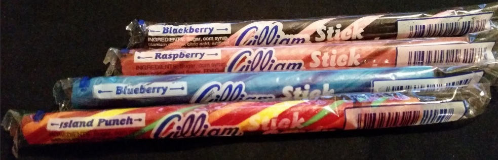 The next candy is something I grew up loving in Upstate New York. These hard candy sticks were a staple at the Slate Hill Orchards. Any of my childhood friends and family can attest to this. On this trip, I *only* purchased four flavors (out of the twelve they had available). Check out the picture below.