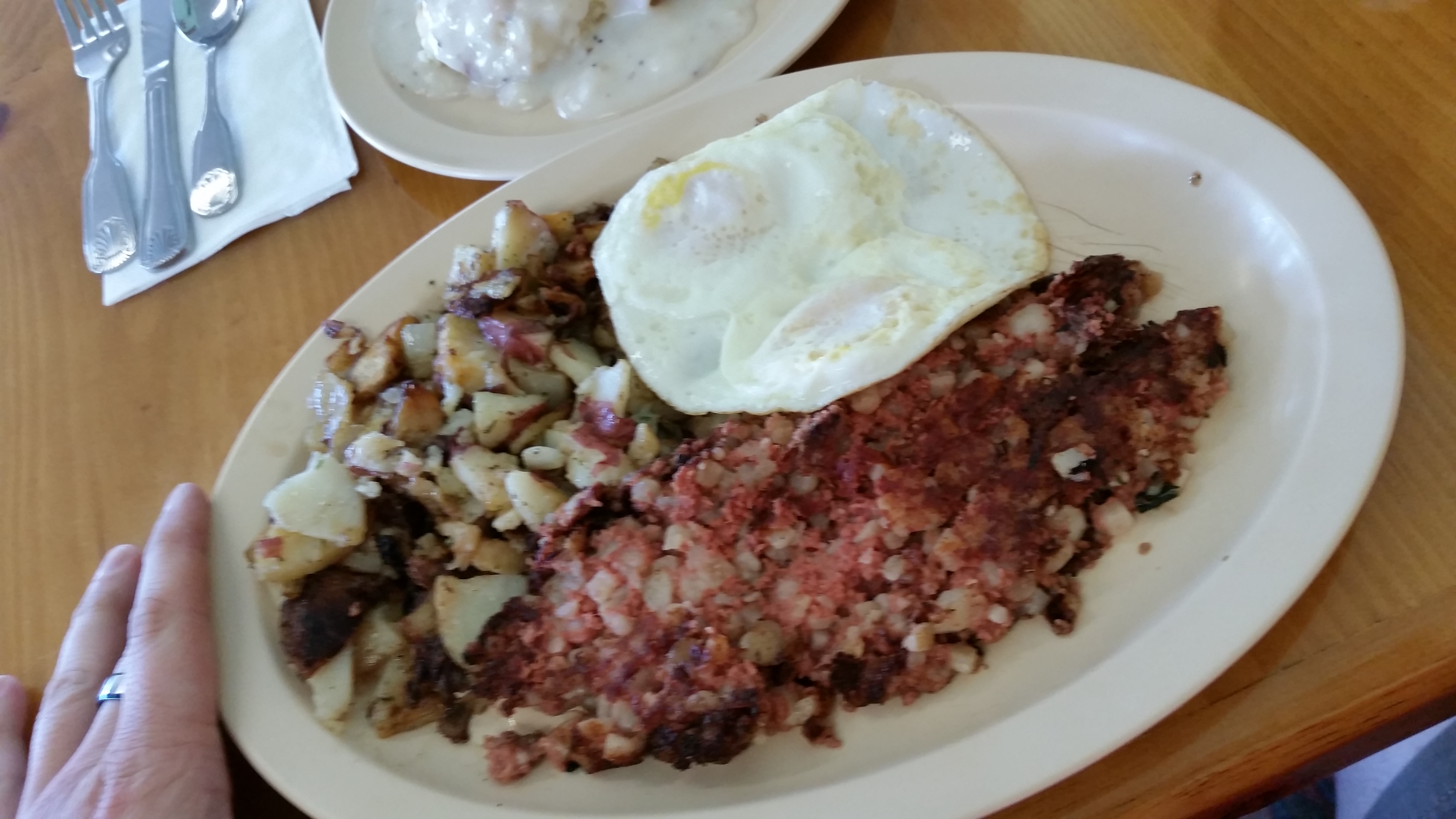 At Patsy’s, they serve breakfast and lunch – all day. They do close at 3pm – so get in quick! During my visit, around noon, I decided I still wanted some breakfast. Upon opening their menu, I found myself immersed in a massive amount of choices. I was starving – and really craving corned beef hash. Lo and behold – there it was! With home fried potatoes and two fried eggs over medium, I was very satisfied with my selection.